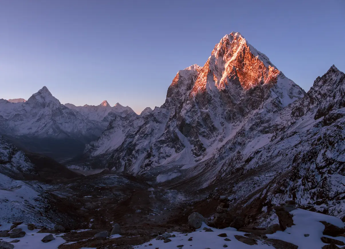 Begin pre-dawn for a climb to Kala Patthar, the best viewpoint for sunrise over Mount Everest and the surrounding Himalayas. After descending to Gorak Shep for breakfast, continue downhill through Lobuche and Thukla to Pheriche. Trek time: six to seven hours.